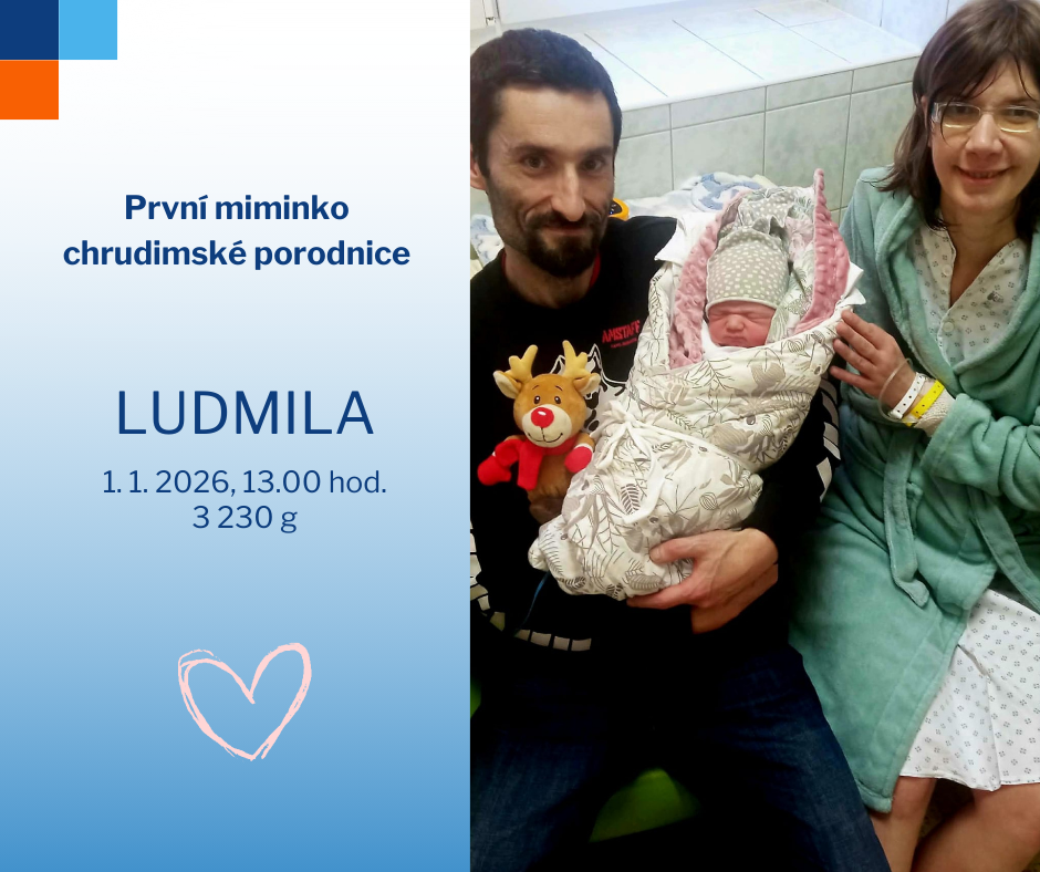 V Chrudimské porodnici se první letošní miminko narodilo rovněž 1. ledna 2026. Přesně ve 13:00 přišla na svět holčička Ludmila s porodní váhou 3 230 gramů. Pro rodiče, kteří bydlí v Chrudimi, jde o první dítě.