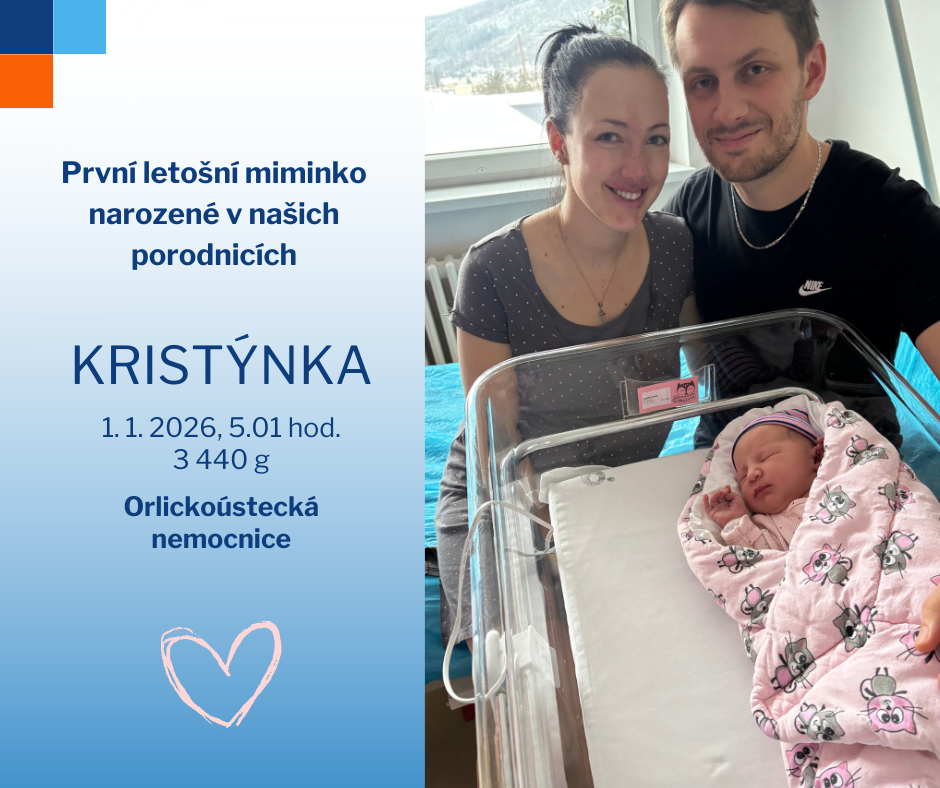 Úplně prvním miminkem roku 2026 v Pardubickém kraji se stala holčička Kristýna, která se narodila 1. ledna 2026 v 5:01 v Orlickoústecké porodnici. Při narození vážila 3 440 gramů. Rodiči jsou Lukáš a Kristýna Svatošovi z Ústí nad Orlicí a Kristýnka je jejich prvním společným potomkem.
